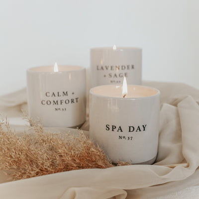 Lavender and Sage Soy Candle - Cream Stoneware Jar - 12 oz