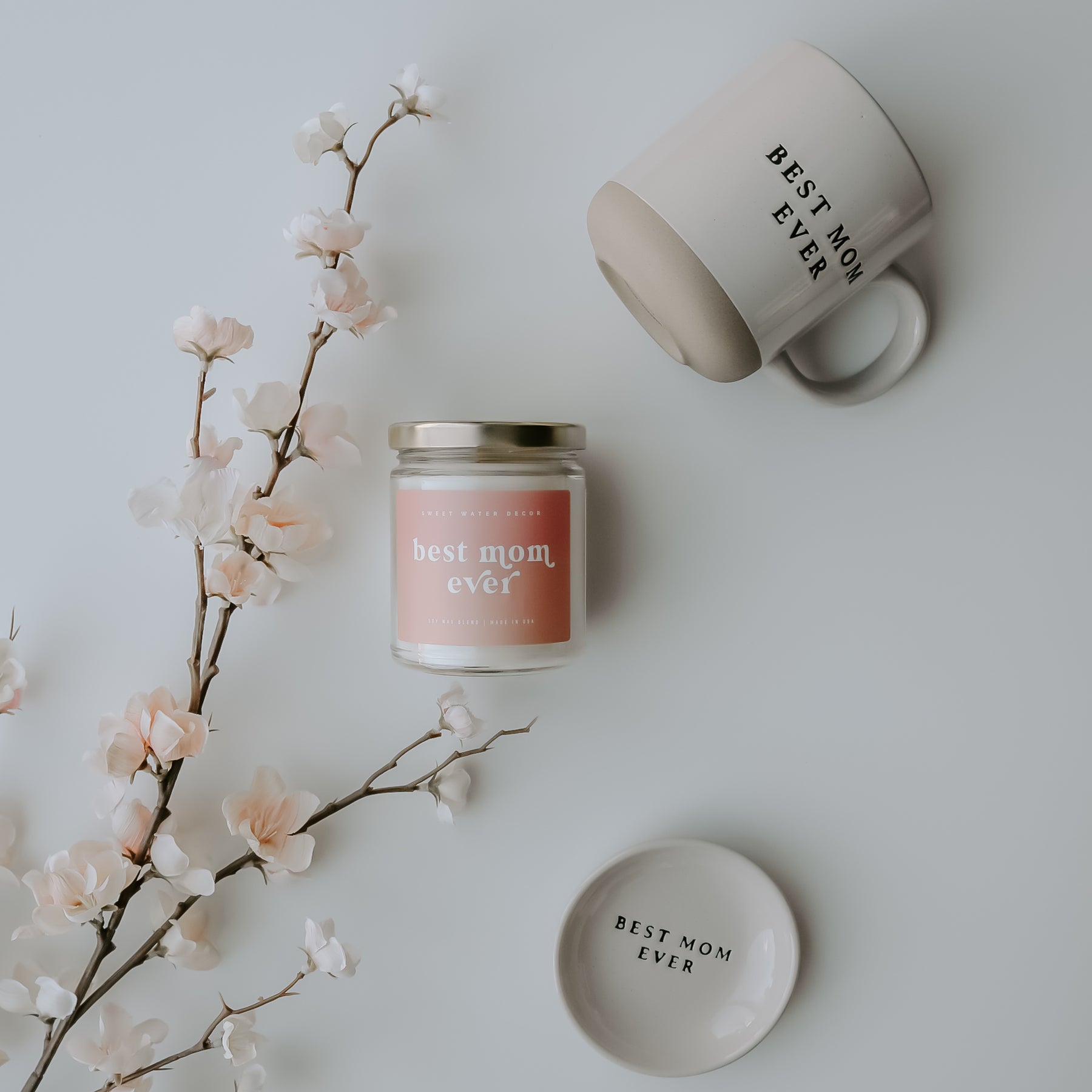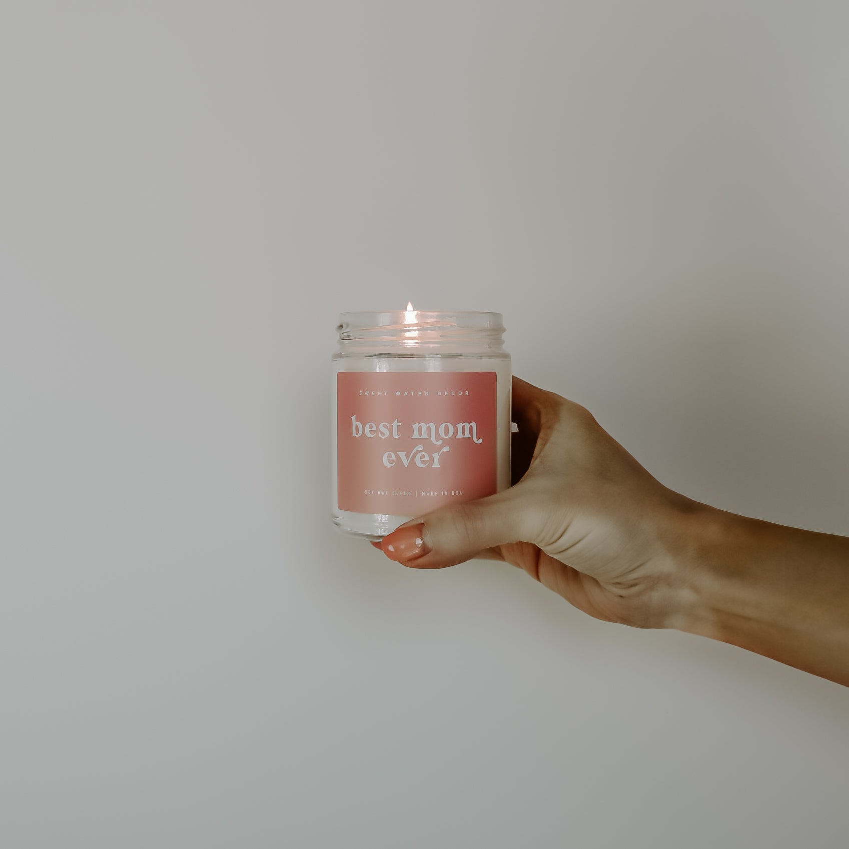 Our Best Mom Ever! soy candle features a soothing and relaxing scent, reminiscent of a luxurious day spent unwinding at the spa. Scented with sea salt, jasmine, wood, cream, it will show her you care.  Order one for the perfect Mother's Day gift, birthday gift, baby shower gift, and even Christmas gift for your mom.Â