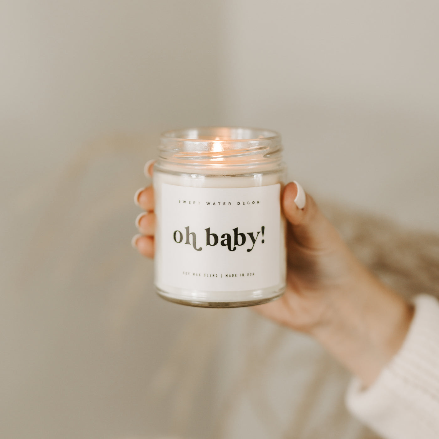 Give mom-to-be a sweet surprise with the fresh, light scent of our Oh Baby! candle. This 9 oz, neutral colored candle smells like a day at the spa and is a perfect gift for the new mom who needs that extra TLC.Â